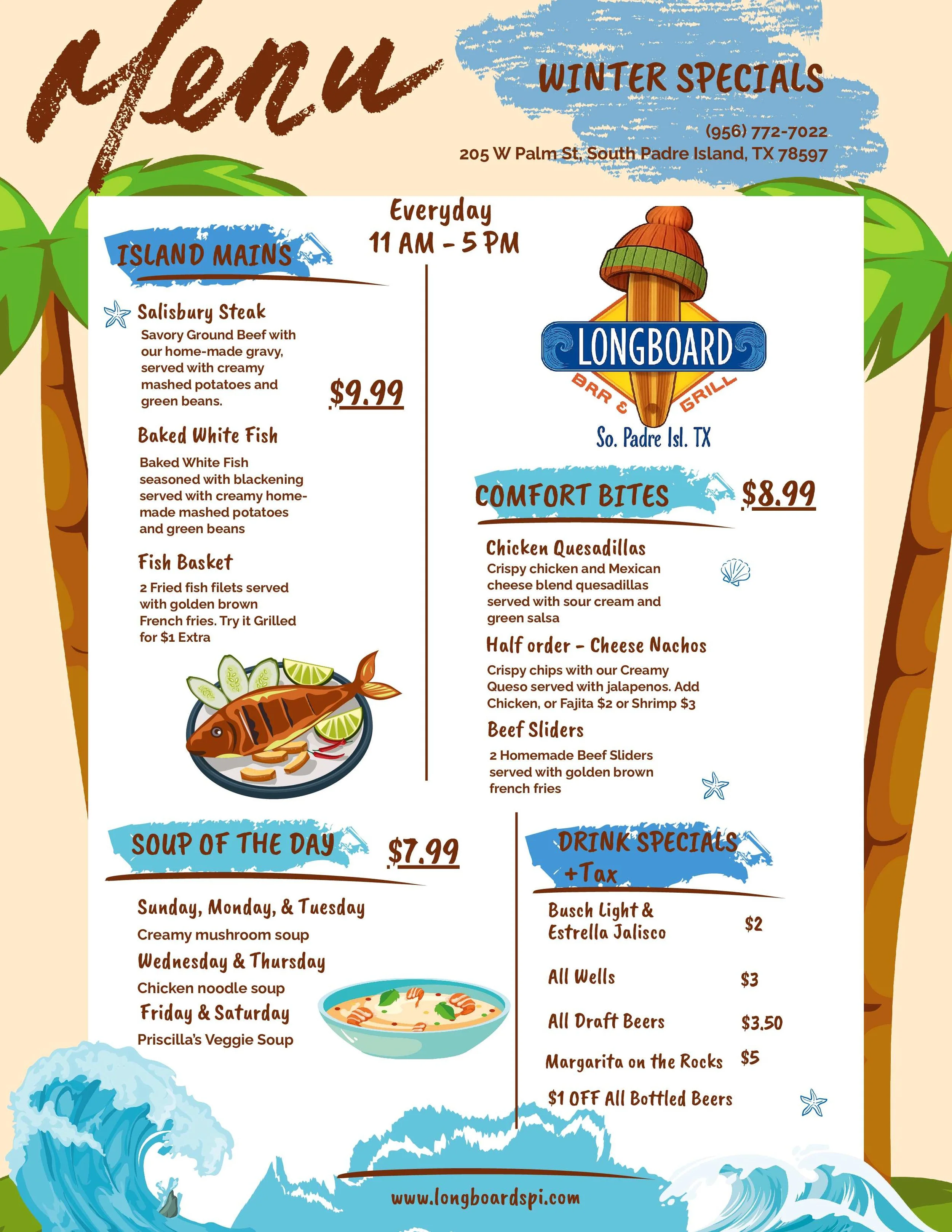 Longboard bar and Grill is a waterfront restaurant & entertainment hot spot in the South Entertainment District on South Padre Island. Family and locally owned. We are inviting you to a location that was once a pillar of this area. This old-school favorite has come back to life as a venue, bar and grill for all ages.